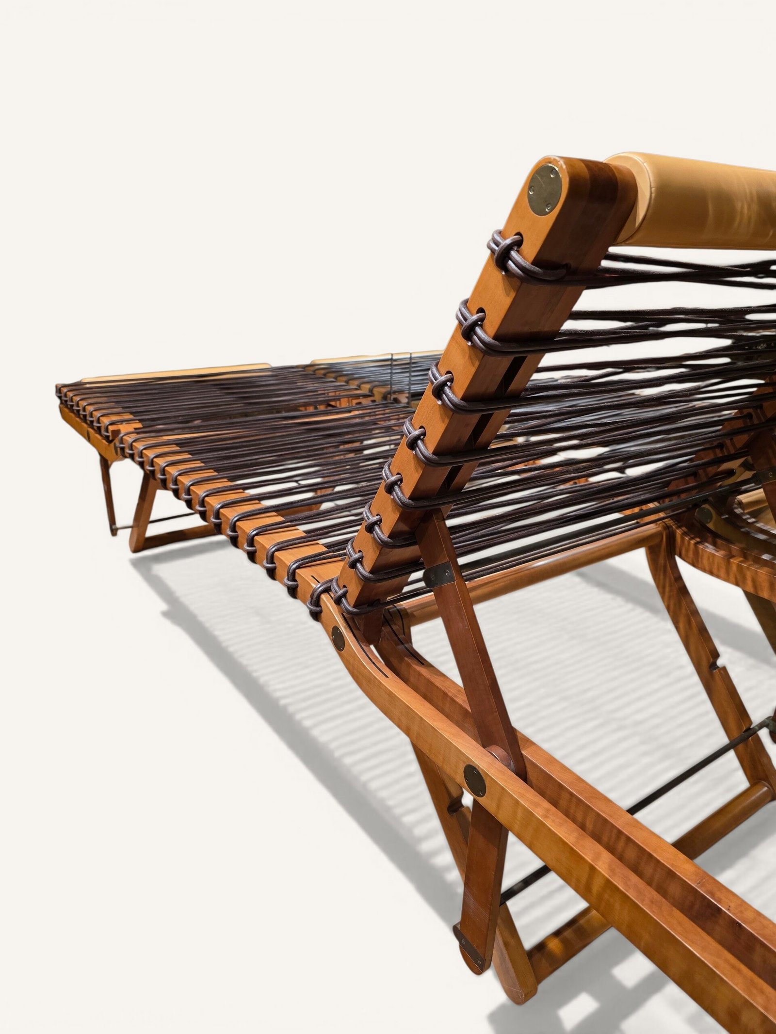 Méridienne Hermès design en poirier, cuir et laiton signée Peter Coles et Rena Dumas. Pièce de collection.