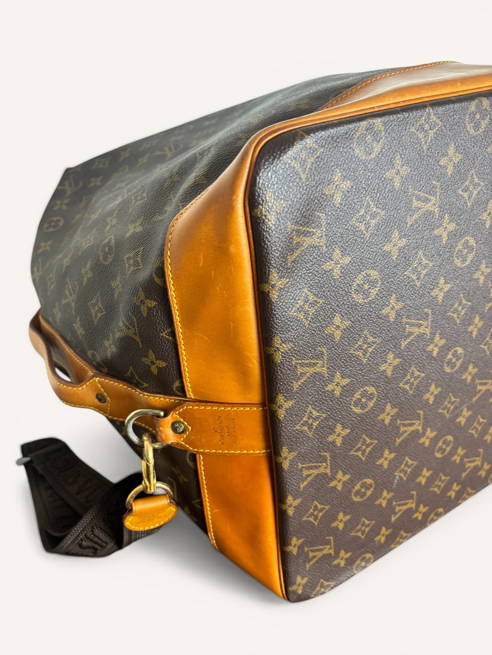 Ce sac Louis Vuitton marin en toile monogram, accompagné de sa bandoulière, incarne parfaitement l’esprit du voyage et l’élégance fonctionnelle de la maison Louis Vuitton.